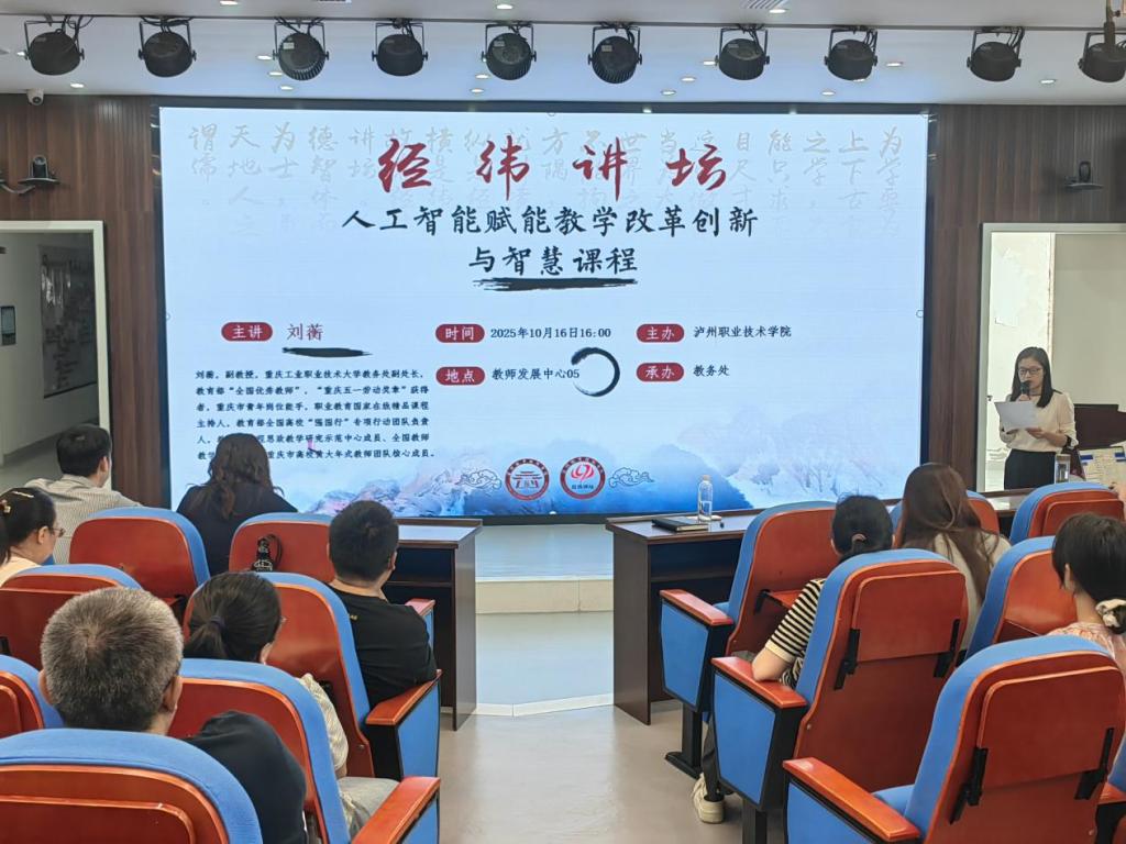 10月16日下午,学校邀请重庆工业职业技术大学教务处副处长,教育部“全国优秀教师”“重庆五一劳动奖章”获得者刘蘅在教师发展中心05会议室召开《人工智能赋能教学改革创新与智慧课程》专题讲座。本次讲座教务处处长魏荷琳主持,各二级学院副院长、国家级、省级及校级精品在线开放课程负责人及主要成员参加。